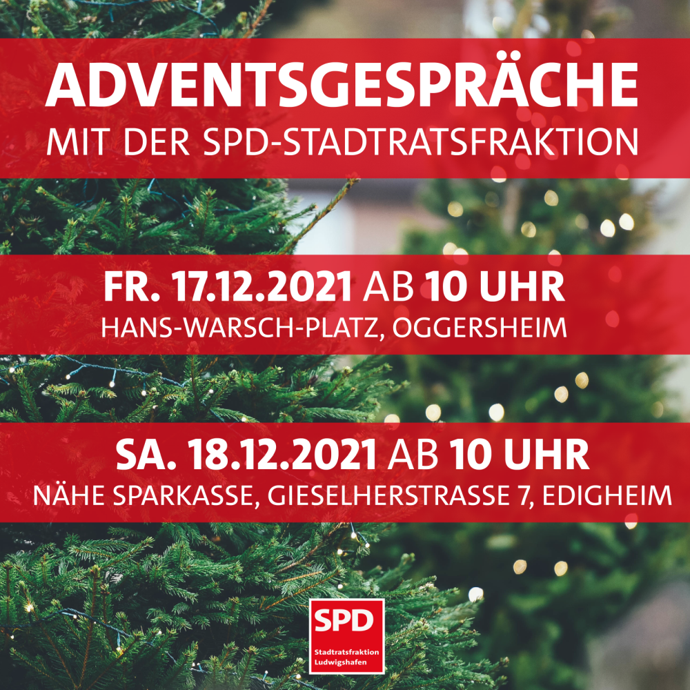 Am morgigen Freitag, den 17.12. finden die Adventsgespräche auf dem Hans-Warsch-Platz in LU-Oggersheim statt und am Samstag, den 18.12. dann nahe der Sparkasse in LU-Edigheim - jeweils ab 10 Uhr vormittags.